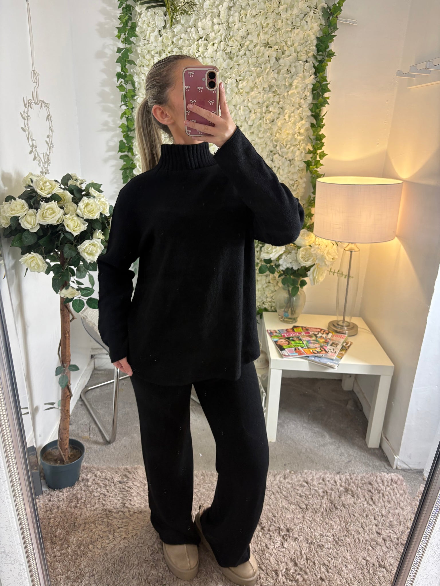 The perfect blend of comfort and style, this lounge set features soft material with stunning detail . elasticated standard length pants for an effortlessly put together look. Perfect for lounging, errands or day to day life!!