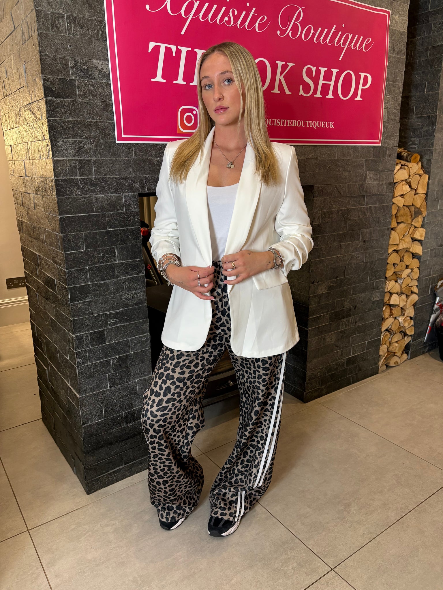 • Load image into Gallery viewer, Animal Print Stripe Trousers White